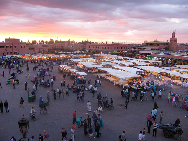 Dopo colazione nel bivacco, i cammelli e i loro camellieri ci riaccompagneranno alla macchina. Attraverseremo le montagne per arrivare a Ouarzazate e Ait Saoun dove visiteremo gli studi cinematografici. La città di Ouarzazate è anche chiamata "Hollywood africana" perché è stata location di film meravigliosi come "Gladiatore" e "La Mummia". La Kasbah di Ait Ben Haddou non è lontana e potremo visitarla brevemente prima di pranzo. Riprenderemo poi la strada per attraversare l'Atlante Alto. Ci aspettano vallate infinite e cime che si perdono tra le nuvole. Ristoranti e negozi interromperanno brevemente il nostro viaggio tra le montagne. Marrakech ci accoglierà la sera. Il Riad si trova proprio dietro Jemaa Lefna.