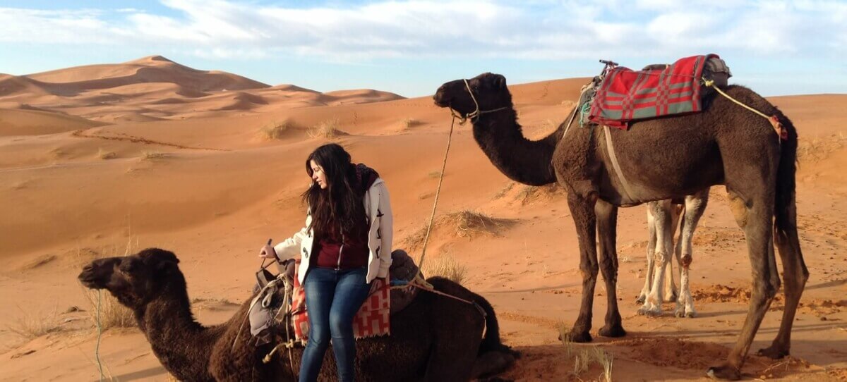 It starts early in the morning from Marrakech. Crossing the Atlas mountains we will spend in the city of Ouarzazate, famous for its movie studios and for being the city that opens the door to the desert. We will have lunch here. We will resume the path towards Agdez, known as the starting point of the "Street of a Thousand Kasbahs", which will end in Zagora. Along the way we will admire the lush green expanse of palm trees that characterizes the Draa Valley and meet villages through which you can see and steal moments of everyday life. From the guys who came home after school, consume kilometers of road on foot, to women who work outside of their homes, men who drink tea and converse in the shade of the trees. Once in Zagora will make a path on the backs of camels and spend the night in a tent (choice of standard or luxury tent) ..